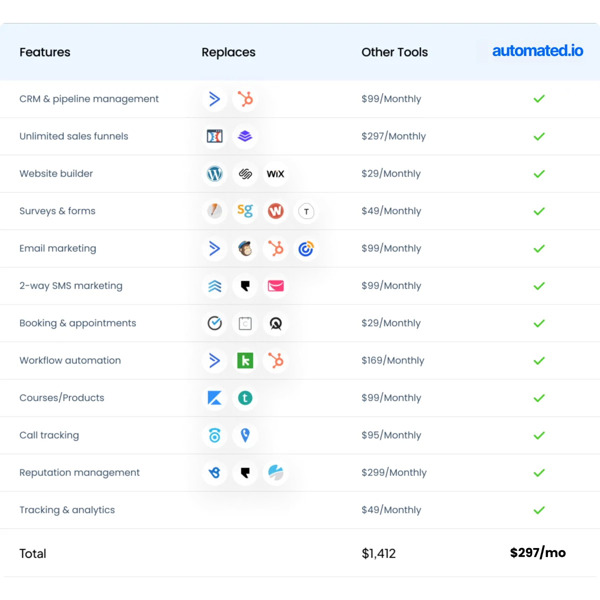 Not to mention how much money you're saving on monthly software subscriptions when you only have 1 fee of $97/m to run a business that can generate $10k-$100k/m+ and beyond.